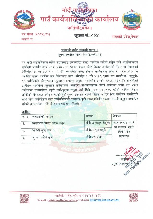 » पकेट बिकास कार्यक्रम लागी लाभग्राही छनौटको सूचना ।