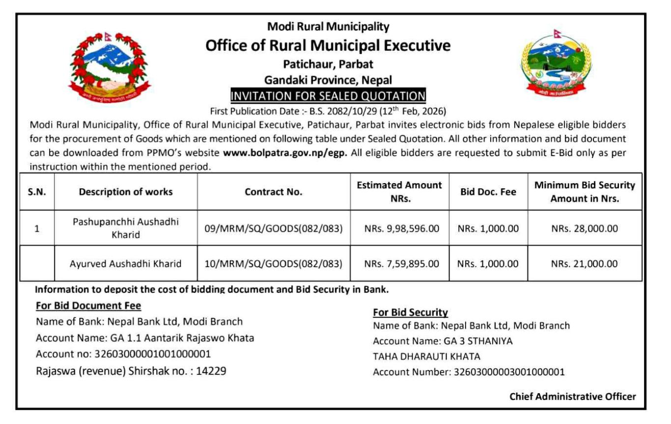 » पशुपन्छी तथा आयुर्वेद औषधि खरिद सम्बन्धी सिलबन्दी आव्हानको सूचना l