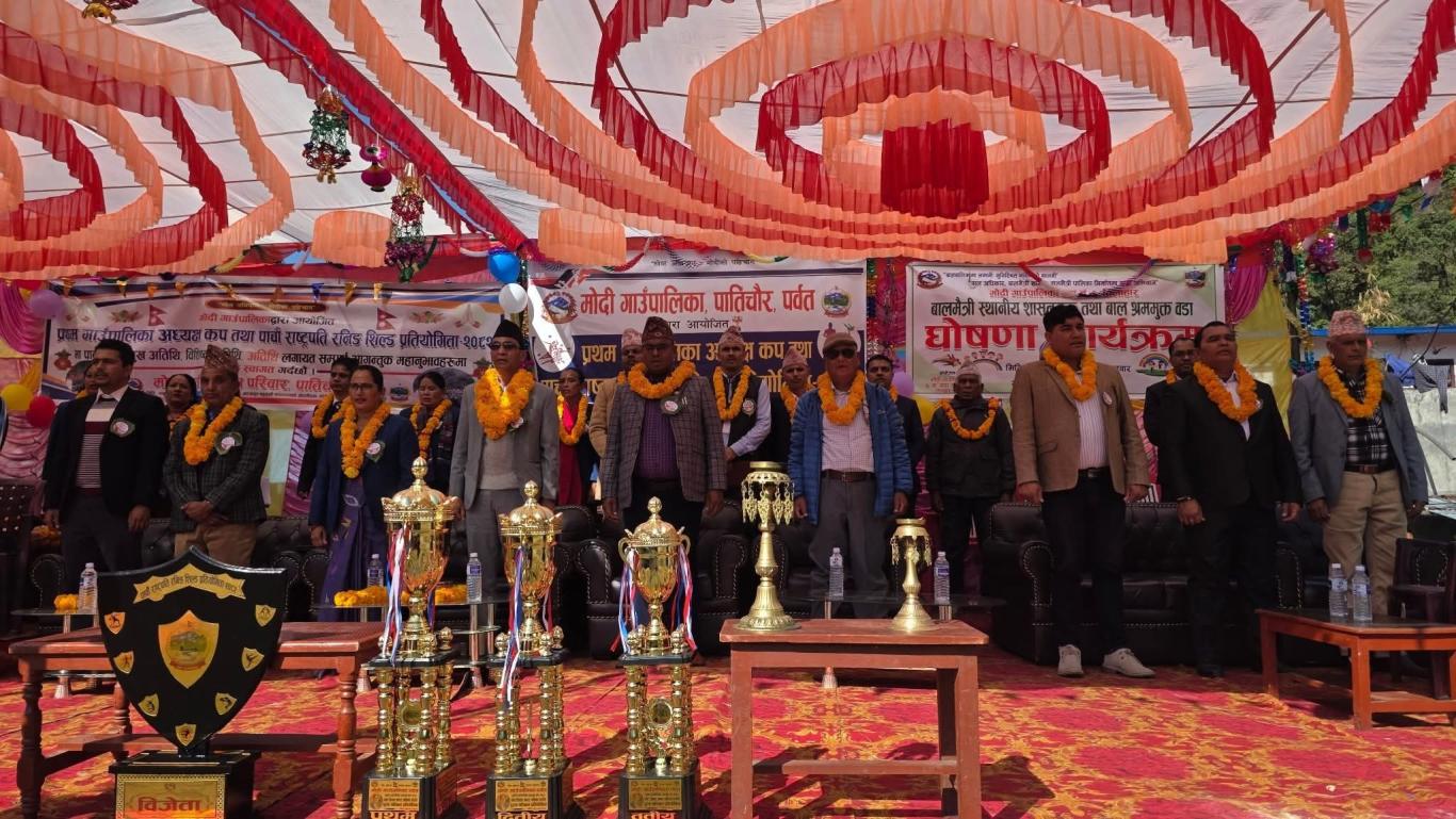 मोदी गाउँपालिकाको आयोजना तथा जिल्ला खेलकुद विकास समिति पर्वत, जिल्ला भलिबल संघ पर्बत तथा मोदी ब्याडमिन्टन संघको समन्वय तथा सहकार्यमा मिति २०८२ मंसिर १४ गते देखि संचालन भएको प्रथम पालिका अध्यक्ष कप प्रतियोगिता, पाँचौ राष्ट्रपति रनिङ शिल्ड प्रतियोगिता