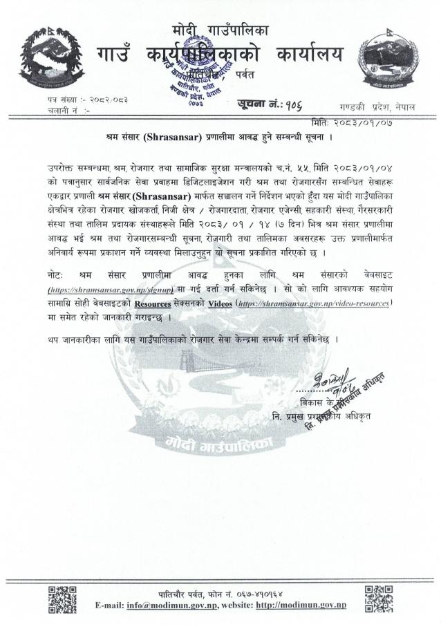 श्रम संसार प्रणालीमा आवद्द हुने सम्बन्धी सूचना l