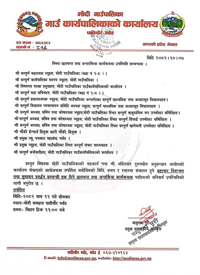 मोदी गाउँपालिकाको आ.व २०७८/७९ को स्वीकृत दररेट
