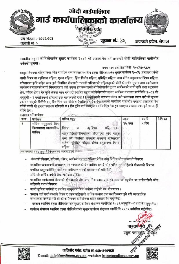 » जिविकोपार्जन सुधार कार्यक्रम २०८२ को प्रस्ताव पेश गर्ने सम्बन्धी सूचना ।