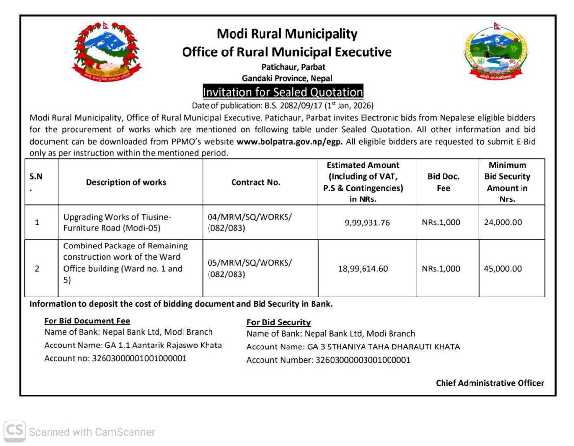 सार्वजनिक खरिद/बोलपत्र सूचना