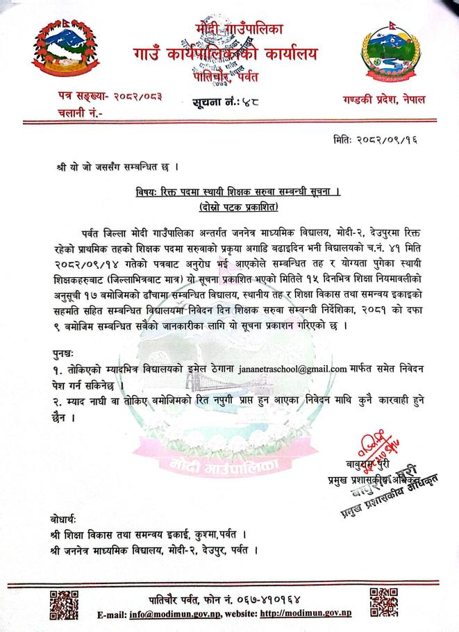 » रिक्त पदमा शिक्षक सरुवा सम्बन्धि सूचना ।