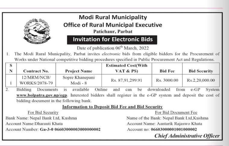 सार्वजनिक खरिद/बोलपत्र सूचना